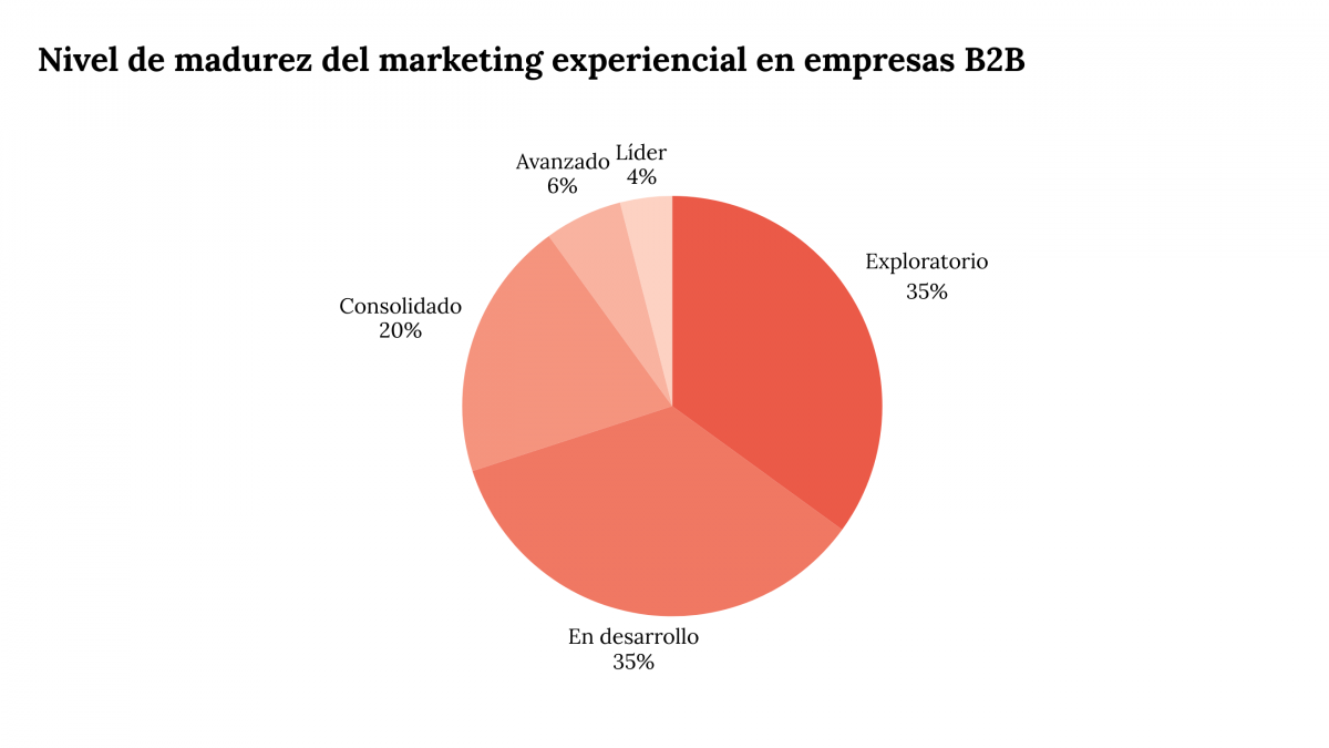 Inicialmente, esta tendencia nos ha parecido algo más propio de los años anteriores. Sin embargo, los datos indican que pueda ir a más en 2026 y más adelante, incluso. Más de dos tercios (78%) de los marketers B2B ya destinan parte de su presupuesto a marketing experiencial. Y, sin embargo, la mayoría sigue en etapas iniciales de exploración o desarrollo. Esto indica que hay mucho espacio para innovar y mejorar en cómo se diseñan estas experiencias.